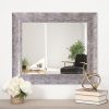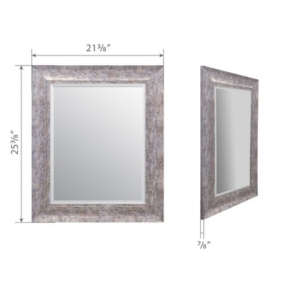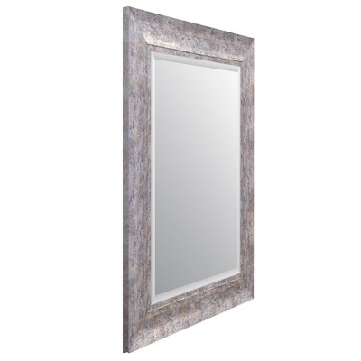 - This beveled rectangular mirror is beautifully framed in a scooped 2.8″ wide frame finished in a distressed silver