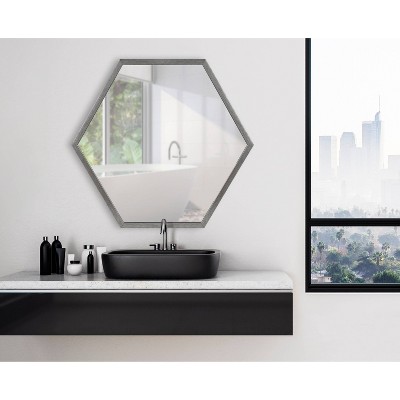 Add an element of light and dimension to your home with the Laverty modern mirror. The hexagon shape and silver frame create an industrial design capable of thriving in any living space. Adding a mirror to your home decor opens up narrower spaces by reflecting light sources and spreading them across the room. The Laverty mirror is 24 inches by 26 inches, making it an excellent medium-sized mirror to use as an industrial double vanity in your master bathroom. Create a makeup and styling area in your bedroom by hanging it vertically, or hang it horizontally over a console table in your entryway. It only takes a matter of seconds to mount thanks to its lightweight frame and metal D-ring hangers pre-installed on the back. No matter how you choose to display this mirror, it’s sure to dazzle all of your guests with its clean, modern design and trendy geometric shape.
