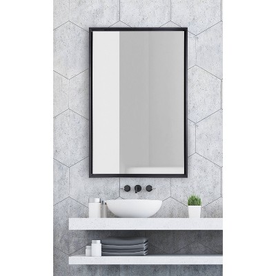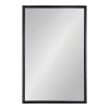 Add a sleek, modern accent piece in your home with this beautiful Evans Wall Mirror from Kate and Laurel. This mirror brings a modern simplicity to your home, featuring a classic, rectangle shape and a chic black finish on its frame. The overall dimensions are 24 inches wide and 36 inches tall, providing a contemporary statement in your home that doesn’t overpower your other decor pieces. In fact, we recommend displaying the Evans Modern Wall Mirror in multiples, creating a dynamic triad or dual wall display. Use this mirror as a contemporary accent piece in any room of your home. Thanks to its modern, yet simple design, its easy to feature in any living room, bedroom, bathroom, entryway, or kitchen. Its rectangular shape also allows it to be easily displayed as a bathroom vanity mirror over a sink. The Evans Modern Wall Mirror is ready to go right out of the box in a matter of seconds, with no assembly required and metal D-ring hangers attached to the back for easy and secure installation.