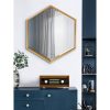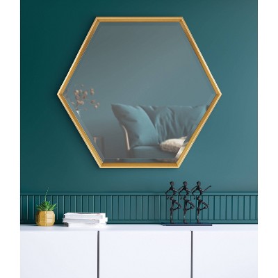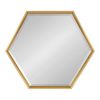 Go above and beyond the standard wall mirror with a mirror that utilizes clean, minimal geometry. The Calter wall mirror offers your home a bold accent piece that makes any space more dimensional and vibrant. It features a sophisticated yet simple design, with a sleek, hexagon shape that makes an instant impression, with a beautiful gold finish that blends into any decorative aesthetic. Adding a mirror to your wall brings more light to your space, making it appear dimensional and spacious. The Calter wall mirror also has a sleek, beveled edge, which draws in even more light to make your space feel cozy yet bright. This mirror’s overall dimensions are 30 inches by 34 inches, creating a dynamic and decorative focal point to wow everyone who enters your charming, modern home. It looks fantastic as a decorative accent or as a functional bathroom vanity mirror above your sink. It looks great in any living room, bedroom, entryway, or dining room as well. This hexagon wall mirror hangs vertically or horizontally in seconds with the convenient metal D-ring hangers attached to the back.
