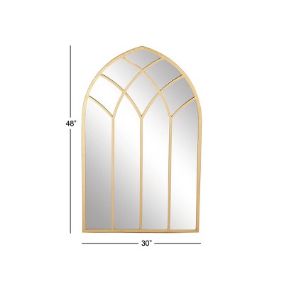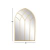 Add some elegance to your entryway, lobby, living room, or bedroom with this striking modern decorative wall mirror. This accent piece features an arch-shaped design and a gold-finished overlay with geometric pattern that will surely beautify your space. With its impressive look, this stunning mirror suits any home with art deco or modern interior. Apart from decorating your home, the purpose of this mirror is to bounce back outdoor light to a small room to make it look bigger. Pair this decorative wall mirror with house plants or other wall decor accent pieces to blend everything together perfectly. A loop hardware is placed at the back section for easy hanging via nail or screw. Suitable for indoor use only. Traditional theme. This item comes shipped in one carton.