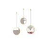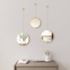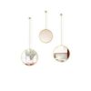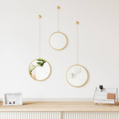Through an unexpected use of hardware and materials, this trio of interchangeable mirrors is bound to make an impact on your walls. Introducing Dima Mirrors by Umbra. This trio of mirrors can be hung separately, or in a variety of patterns. If you have an awkward wall or space in your house that needs a touch of dΓ©cor, the Dima mirrors make a great solution since they are so highly customizable. Sold as a set of three. Eye Catching Hardware Dima includes all mounting hardware. The hardware itself is part of the dΓ©cor as the mirrors hang on a chain secured to the wall by a rounded knob, with a button-like quality. These dainty mirrors look great in an entryway, powder room, bedroom or as part of a gallery wall. For an unexpected take on wall dΓ©cor, order this trio of dainty mirrors today. About Umbra: A global product design company providing original, modern, casual, and functional design for the home.