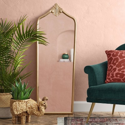 Open up any room in your home and add style to your space with this Floor Gold Gilded Decorative Wall Mirror from Opalhouseโข. The uniquely shaped frame with gilded finish adds a glamorous look, while the reflective glass mirror casts a brilliant reflection, letting light bounce off and expand your space. Lean it against the master-suite wall or hang it in the entryway for a touch of style and function.