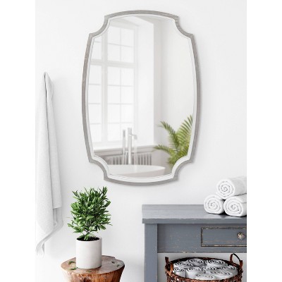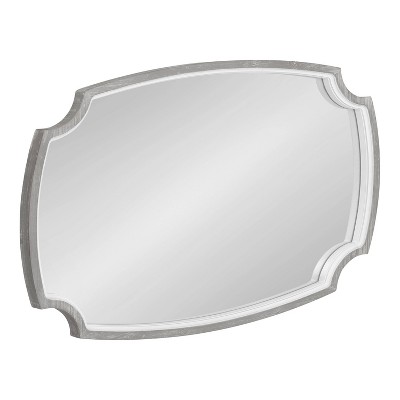 Transform your home into a charming and humble seaside chateau with wall decor reminiscent of coastal decor. The Orianne wall mirror features a beautiful, traditional design with scalloped corners and a two-tone gray and white finish for a pure and clean aesthetic. The frame has a wood construction inspired by true artisanal craftsmanship, distressed by hand for a one-of-a-kind look. The mirror itself features a large surface area of reflective glass, enhancing your space by spreading more light and creating a more dimensional open concept. The overall dimensions of this beautiful scalloped wall mirror are 21.25 inches by 1.5 inches by 31.5 inches, making it an awesome addition to your bathroom vanity. This size also makes the Orianne a decorative addition to your living room, bedroom, entryway, or office, too. Hang it on its own as a dynamic focal point or make a statement with a wall display of multiples. Choose a vertical or horizontal orientation for hanging this mirror, thanks to the convenient metal D-ring hangers attached to the back of its frame.