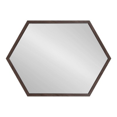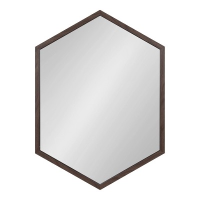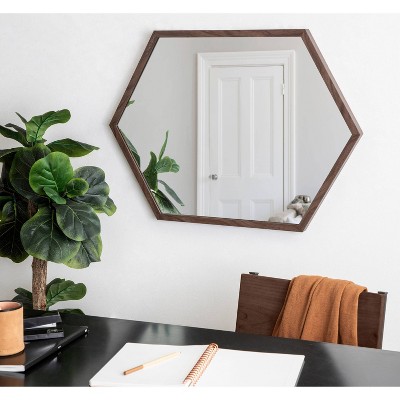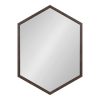 Add an element of light and dimension to your home with the Laverty geometric mirror. The trendy hexagon shape and walnut brown frame create a minimalist design capable of thriving in any living space. Adding a mirror to your home decor opens up narrower spaces by reflecting light sources and spreading them across the room. The Laverty mirror is 22 inches by 31 inches, making it an excellent medium-sized mirror to use as a double vanity in your master bathroom. Create a makeup and styling area in your bedroom by hanging it vertically, or hang it horizontally over a console table in your entryway. It only takes a matter of seconds to mount thanks to its lightweight frame and metal D-ring hangers pre-installed on the back. No matter how you choose to display this mirror, it’s sure to dazzle all of your guests with its clean, modern design and trendy geometric shape.