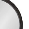 The Uldrich mirror takes rustic material and updates it for the 21st century. This wall mirror features a round shape and a distressed black finish, showcasing a modern take to farmhouse decor aesthetics. The frame was made of a robust blend of lightweight wooden material, making it as resilient as it is beautiful, plus allowing it to be easy to mount. This circular mirror’s overall dimensions are 24 inches wide by 24 inches tall, making it a stellar focal point on its own or in multiples as a dynamic wall display. Adding a mirror to your wall not only adds a decorative touch but makes your space feel more open and vibrant. Our Uldrich mirror looks excellent as a decorative statement in your living room, entryway, bedroom, or office. It also looks great as a bathroom mirror on a single or double vanity set up in your powder room or master. Hang the Uldrich round mirror in minutes with the convenient D-ring hangers attached to the back of the frame.