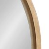 The Evans wall mirror adds a lovely, boho-chic accent to any room of your home. The Evans mirror has a robust, solid poplar wood frame with a light natural finish, creating a functional, premium accent that’s perfect for any mid-century modern living or office space. The interior glass of this mirror floats within the frame, providing an eye-catching, unique design detail and statement. The Evans mirror features a 30-inch diameter, providing the perfect broad accent to highlight over a fireplace or console table. Hanging a mirror in your home spreads more light throughout the area, creating more depth and dimension even in small spaces. It’s perfect for any modern living room, bedroom, entryway, dining room, or office. You could also use this functional wall accent as a bathroom mirror above a vanity or sink. The Evans wall mirror makes for a lovely focal point on its own, or you can display it in multiples for a grand, mid-century wall display. This wall mirror hangs in a matter of seconds with convenient metal D-ring hangers securely attached to the back.