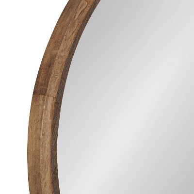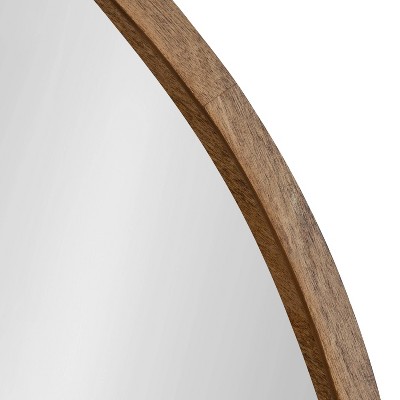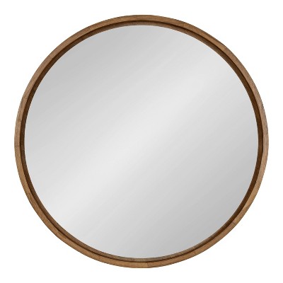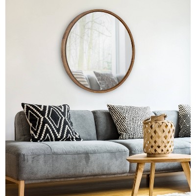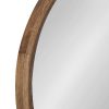 The Evans wall mirror adds a lovely, boho-chic accent to any room of your home. This mirror has a robust, solid poplar wood frame with a rustic brown finish, creating a functional, premium accent that’s perfect for any mid-century modern living or office space. The interior glass of this mirror floats within the frame, providing an eye-catching, unique design detail. The Evans mirror features a 30-inch diameter, providing the perfect broad accent to highlight over a fireplace or console table. Hanging a mirror in your home spreads more light throughout the area, creating more depth and dimension even in small spaces. It’s perfect for any modern living room, bedroom, entryway, dining room, or office. You could also use this functional wall accent as a bathroom mirror above a vanity or sink. The Evans wall mirror makes for a lovely focal point on its own, or you can display it in multiples for a grand, mid-century wall display. This wall mirror hangs in a matter of seconds with convenient metal D-ring hangers securely attached to the back.