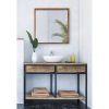There’s no better way to open up your space than adding an oversized accent mirror. Mirrors reflect light throughout your rooms and add depth and dimension. The Hutton collection of mirrors is a decadent selection of geometric mirrors with rustic farmhouse charm. Each Hutton Mirror includes a solid wood frame with a beautiful natural finish, creating a smooth, sturdy inspired by art deco design. It also has a two-inch depth for an eye-catching, dynamic profile and shelving opportunity. The Hutton Square mirror has an ample size of 30 inches high by 30 inches wide. This generous sizing makes it a grand statement to hang above the mantle, over an entryway console, or in the bedroom to spread a little more light. You can even hang it over your sink for a rustic bathroom mirror for your vanity. The actual mirror within the frame is 28.5 inches high by 28.5 inches wide. The square mirror comes fully assembled, so it only takes a matter of minutes to mount it to the wall with the metal D-Ring hangers and included hardware.