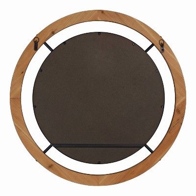 Create an eye-catching focal point that blends shabby-chic farmhouse aesthetics with modern sophistication with the Whalen Wall Mirror from Kate and Laurel. The mirror itself has a round, wooden frame, with a brown finish for a look that appears handcrafted, giving your home a decorative, shabby-chic theme. It takes that rustic-inspired aesthetic and blends it into contemporary decor themes with its round, on-trend shape. The Whalen Mirror creates a dynamic wall display and home statement, standing at a robust 32″ diameter. Thanks to this oversized frame, the rustic Whalen Wall Mirrors makes a bold statement and an eye-catching focal point in any living room, bedroom, entryway, kitchen, or dining room. The size and shape of this mirror also makes it an interesting vanity mirror for your master bedroom or powder room, providing a traditional display piece with practicality. Each Whalen Mirror includes metal D-ring hangers secured to its back for a quick and easy wall display in a matter of minutes.