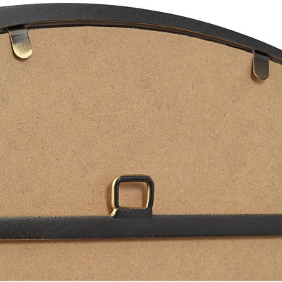 - Black finish with gold accents. Metal frame construction. MDF backing. Non-beveled edge.