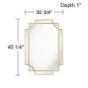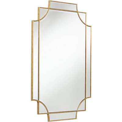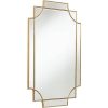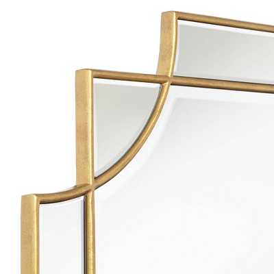 Create a look inspired by modern flair with this geometric wall mirror. The eye-catching shape is enhanced by overlapping framework. Beveled glass accentuates the dimension of the design. A sleek gold finish is the perfect finishing touch of glam.