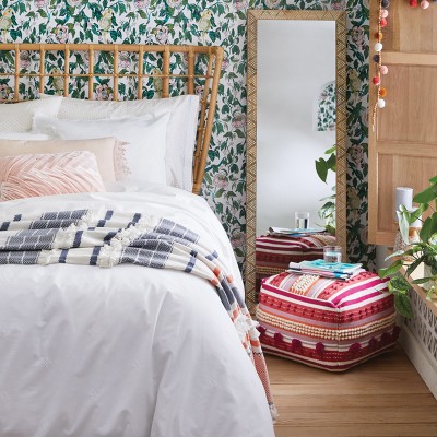 When you’re getting ready to go out, check out your look in this Carved Dot Natural Wood Floor Mirror from Opalhouseβ’. This full-length floor mirror features a natural wood frame and an intricate, uniform pattern of white dots that looks great with your bohemian home decor. Back hooks make it easy to mount in your walk-in closet, bedroom or hallway, and the 52-inch length let you see your entire reflection.