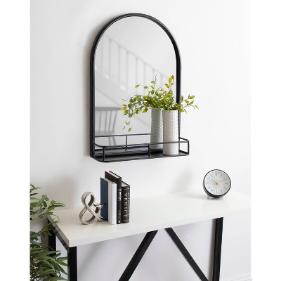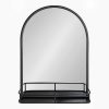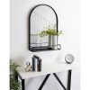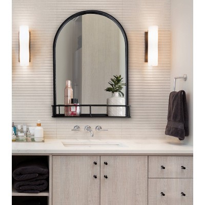 The Estero wall mirror is an excellent way to kickstart your home’s modern farmhouse makeover. Designed with a high-quality, metal-forged iron frame, the Estero reminds you of traditional, down-home country decor with a modern twist. It features a sleek, black finish and a sophisticated arched shape, creating a contemporary window-like appearance. In addition to being a robust, beautiful wall mirror, the Estero also features a small yet functional display shelf, featuring 4 inches of depth and 20 inches of width. The size of this shelf makes it excellent to store and display little soaps, lotions, toiletries, spices, or small decorative items like photos or succulents. As a practical piece of wall decor, the modern farmhouse style of the Estero wall mirror looks excellent in any contemporary or rustic living room, bedroom, entryway, dining room, or kitchen. It is particularly suitable as a bathroom mirror above a sink in a powder room or a master bath. This mirror is ready right out of the box and hangs in a matter of seconds with sturdy metal keyhole hangers attached to the back of the frame.