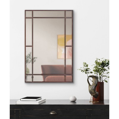When you have a smaller or darker room in your home, adding a wall mirror with ample surface area makes your space appear more open. That’s what makes the Westgate such a practical element to introduce to your home: Within the rectangular glass, you’ll find a modern overlay that incorporates clean lines, breaking up the large surface area while adding visual intrigue. The Westgate is perfect for various decorative styles, featuring a transitional bronze finish that will blend into any aesthetic. The Westgate frame was composed of a lightweight yet robust wooden material, making it easy to hang or move throughout your home. It’s great to command attention and create a bold focal point in your bedroom, entryway, living room, or dining room. The Westgate also makes a fantastic vanity mirror in your bathroom with its large display surface. The overall dimensions of the Westgate are 20 inches by 30 inches, making it a beautiful statement piece on any wall in your home. Hang it either vertically or horizontally with the convenient metal D-ring hangers attached to the back of the frame.
