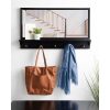 - CONVENIENT STYLE: This modern wall mirror features five wood hooks to hang backpacks, coats, and purses, and a 3.5-inch wood shelf to display photos, hold keys, or showcase some adorably small succulents