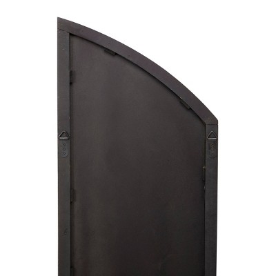 - These windowpane style wooden wall mirrors highlight a rectangular frames with arched tops
