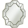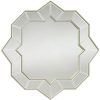 A contemporary wall mirror perfect for enhancing a bedroom space or makeup area. The Aurora mirror from Possini Euro Design is a work of art with modern sensibilities. The quarterfoil silhouette features a champagne finish and beveled glass for extra elegance.