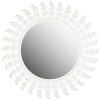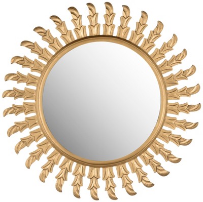 Sun worship takes on new meaning with the round Inca Sun mirror by Safavieh. This unique sunburst in a soft gray finish is created with a classical leaf motif inspired by the form of ancient carved arrows. Use this stellar accessory to add timeless elegance to a living room, bedroom or entry hall. The Sunburst Inca Sun Decorative Wall Mirror by Safavieh is a delicate and lux addition and available in several colors to best complement your personal tastes and decor.