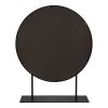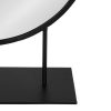The Rouen mirror will make any desk like surface an instant vanity area for your morning or nighttime regime. Use as an accent for any room, whether you are looking for a mirror for your makeup area, bathroom or powder room, or decor for your dining room, living room, entryway console table or office. The frame and stand is constructed of all metal material and stands 22-inches high with an 18-inch diameter mirror. The base is 6-inches deep.