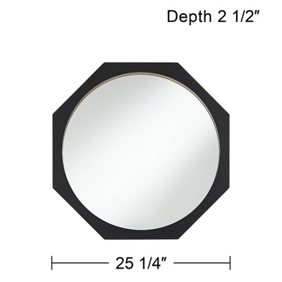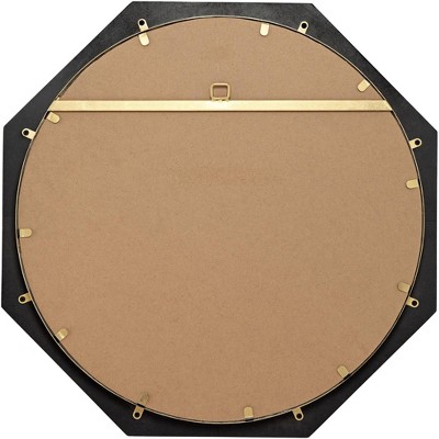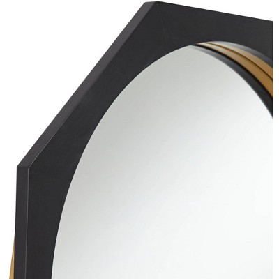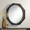 From Noble Park, this modern round wall mirror is a sleek, geometric choice for any room. It offers a bold octagonal, metal frame with MDF backing. The frame adds a black finish with gold accents that add warm sophistication.