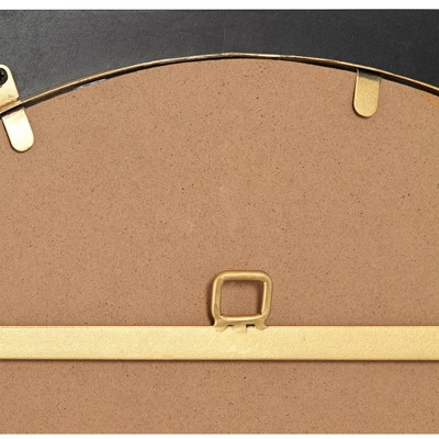 - Black finish with gold accents. Metal frame construction. MDF backing. Non-beveled edge.