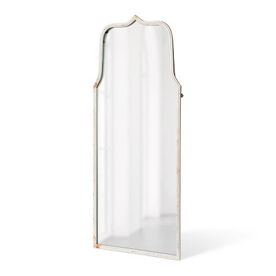 Featuring elegant lines and a rusted antique white paint finish, this metal framed mirror adds a lovely touch of French country charm to any room.