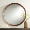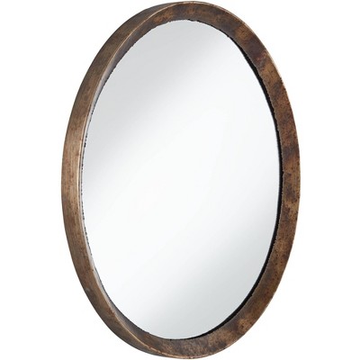 Designed by Uttermost, this striking round metal wall mirror is a charming addition to a relaxed entry or bedroom. The framed mirror features an iron frame with jagged edges that add to its rustic flair. A hammered finish is multi-tonal to create a dimensional, aged appearance that’s sure to draw attention.
