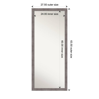 - DIMENSIONS: The overall size of this full-length mirror standing on the floor measures 27.50 x 63.50 inches, including the frame. Its reflective area measures 24 x 60 inches. The mirror itself is not beveled, for full use of the reflective area