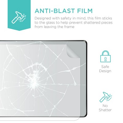 - ANTI-BLAST FILM: In the case of this mirror shattering, safety is made a priority with a anti-blast film that sticks to the glass so broken pieces remain in place