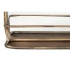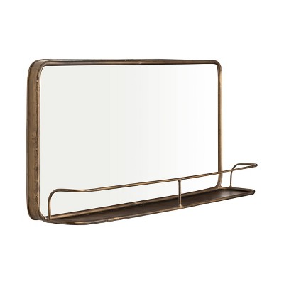Hang some sleek and elegant appeal on your wall with this metal wall mirror . Durably made with a sturdy metal frame, this wall-mounted mirror has a handy shelf for displaying candles, photographs, decorative accents, holiday decor and more. More than a reflection, this Wall Mirror brings light and dimension to any room while adding a bright touch to the decor. This wall mirror has an industrial look that evokes 1940s America with curved gray pipe frames extending outward at the bottom to form a convenient shelf. At approximately 19-inches long, this mirror is sized to fit a single vanity in a bathroom . In an office or living room, try a bud vase and other display items to soften the factory feel.