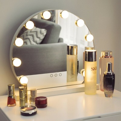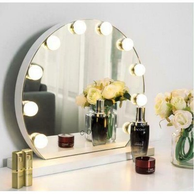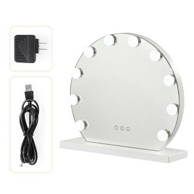Have you ever dream of having a star-like makeup experience? Do you crave a stylish and utility mirror? Then this one is for you. This upgraded lighted vanity mirror takes aesthetic and practical into consideration. It comes with 10 high quality replaceable LED bulbs, which provide enough light for your daily makeup routine. Additionally, brightness of this lighted vanity mirror is adjustable as per your need. Also, three light sources are chosen with you. This gorgeous vanity mirror adds a vintage touch to your room. Perfect Size yet powerful function, this makeup mirror with base suitable various dressing table and ideal for the bedroom. Glossy seamless splicing frame makes the mirror more high-grade and beautiful. This lighted makeup mirror is the ideal gift for your girl. Take it home, you got more than a makeup mirror but also a decor for your room. Specification: Color: White. Material: Steel & Glass. Dimension:16”x5”x14.5”(WxDxH). Input:110-240V. Item weight:6lbs. Package Include: . 1xLighted Mirror. 1xUSB cable. 1xAdapter.