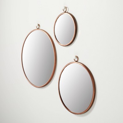 Add instant style and dimension to the wall of your home with this 3-Piece Circle Wall Mirror Set from Hearth & Handβ’ with Magnolia. Set within a sleek, round metal frame with a stylish copper finish, these decorative wall mirrors bring a dash of modern appeal to your space. Hang them in your entryway, bathroom or above your fireplace mantel to add a glamorous touch to your walls while bringing depth and dimension to your space.