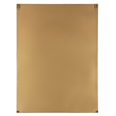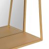 Add a decadent statement inspired by mid-century modern decor with the all-new Lintz Wall Mirror by Kate And Laurel. This wall mirror has a modern rectangular shape with a glam gold finish, taking inspiration from the vintage decor of the 1950s. This mirror works excellently as a vanity in your master bathroom, with a standing height of 24 inches and a width of 18 inches. Use the 5 inches of shelf space for a convenient toiletry display area, featuring your favori te lotions, potions and other items needed to create your home’s inner sanctuary. Hang this mirror in multiples or as one singular statement piece in your home depending on your decor aesthetic and taste. In addition to being a decorative bathroom vanity, you could also hang this mirror in your living room, entryway, or kitchen. This mirror features metal keyhole hangers and no assembly required, allowing you to install it in only a matter of seconds. Create a decadent, functional wall display with a thrifty, vintage edge and an inspired functional design.