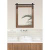 - RUSTIC FARMHOUSE MIRROR: The Cates mirror features a barn door-inspired design with a rustic brown finish and black iron bracket inspired by sliding barn doors
