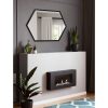 Add an element of light and dimension to your home with the Laverty modern mirror. The oblong hexagon shape and black frame create a minimalist design capable of thriving in any living space. Adding a mirror to your home decor opens up narrower spaces by reflecting light sources and spreading them across the room. The Laverty mirror stands at 24 inches wide by 36 inches high, making it an excellent medium-sized mirror to use as a double vanity in your master bathroom. Create a makeup and styling area in your bedroom by hanging it vertically, or hang it horizontally over a console table in your entryway. It only takes a matter of seconds to mount thanks to its lightweight frame and metal D-ring hangers pre-installed on the back. No matter how you choose to display this mirror, it’s sure to dazzle all of your guests with its clean, modern design and trendy geometric shape.