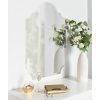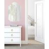 Redecorate your traditional home with a more glamorous look, starting with the Reign arched wall mirror from Kate and Laurel. This frameless statement piece features a scalloped, sophisticated arch shape and a beveled outer edge to create an illuminating accent piece for your charming home. This sizeable arched mirror is an excellent replacement for your standard bathroom mirror, large enough to hang over a powder room sink or, if installed in multiples, over a master bathroom’s double vanity. Its overall dimensions are 36 inches tall by 24 inches wide, creating a dynamic wall display no matter where you decide to hang it. The Reign arch mirror also looks fantastic when hung over a glam console table, living room mantle, or large couch. Say you want to mix it up in your entryway hallway; try hanging multiple Reign mirrors in a staggered layout for a sophisticated wall display. Hanging this mirror is a cinch thanks to the metal hangers securely attached to the back. Utilize the elegant yet modern simplicity of the Reign frameless arched wall mirror to bring your home into the 21st century.