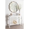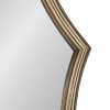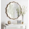 This contemporary mirror is a beautiful piece of functional wall decor to add to your modern glam home. Hang the Scalloped Lalina Mirror in any of your favorite living spaces: Use it as a vanity in your bedroom or bathroom, or as a decorative accent piece in your home office, living room, dining room, or entryway. Wherever you decide to hang it, this gold mirror is an excellent way to combine function with a touch of modern elegance. Each Lalina Mirror has a delicately brushed gold finish within its frame, adding an air of sophistication and mid-century glamour. Hang it in your home in a matter of seconds with keyhole wall mounts on the back. Adding a mirror to your space is an excellent way to reflect and spread light into the room, providing you with functional decor that adds dimension to smaller areas. It also comes fully assembled, ready to hang right out of the box. Combine sophisticated, elegant style with useful functionality that blends into any decor aesthetic from room to room.