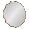 This contemporary mirror is a beautiful piece of functional wall decor to add to your modern glam home. Hang the Scalloped Lalina Mirror in any of your favorite living spaces: Use it as a vanity in your bedroom or bathroom, or as a decorative accent piece in your home office, living room, dining room, or entryway. Wherever you decide to hang it, this gold mirror is an excellent way to combine function with a touch of modern elegance. Each Lalina Mirror has a delicately brushed gold finish within its frame, adding an air of sophistication and mid-century glamour. Hang it in your home in a matter of seconds with keyhole wall mounts on the back. Adding a mirror to your space is an excellent way to reflect and spread light into the room, providing you with functional decor that adds dimension to smaller areas. It also comes fully assembled, ready to hang right out of the box. Combine sophisticated, elegant style with useful functionality that blends into any decor aesthetic from room to room.