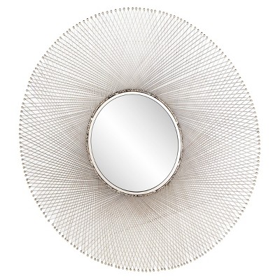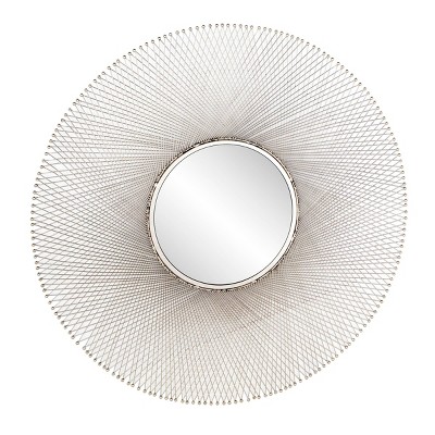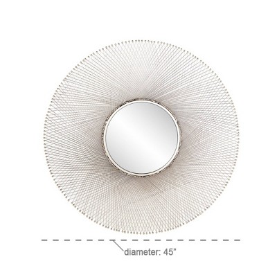 - This round decorative wall mirror features a web-like geometrical pattern with sleek iron ball tips
