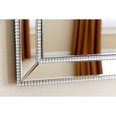 Bring a shimmering touch to your walls with the Saray Rectangle Wall Mirror from Abbyson Living. Perched in a silver embellished frame, this decorative wall mirror brings a stunning appeal to your space, while its rectangular silhouette blends with a variety of decor styles. Whether you hang it over the console table in your entryway or choose it as an accent piece for your living room area, this rectangular wall mirror will bring sheen to your interiors.