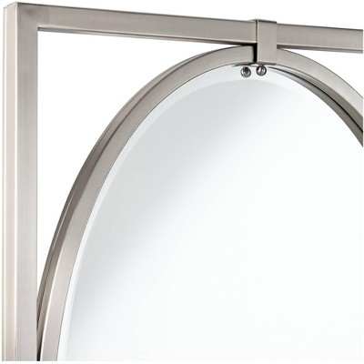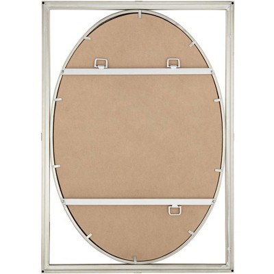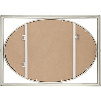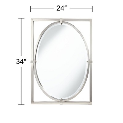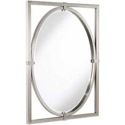 Complete your decor with this contemporary decorative oval wall mirror. The beveled glass and frame is surrounded with a rectangular frame a brushed nickel finish. Crafted in metal. An exclusive Uttermost design for Lamps Plus.