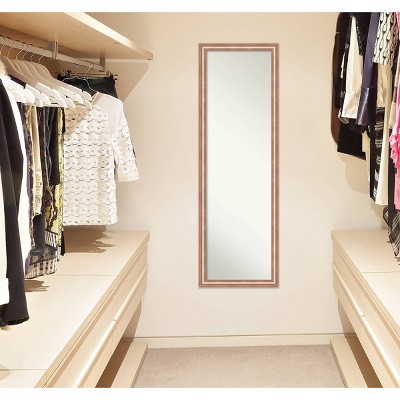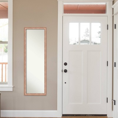 This high-quality, 100% real wood full-length mirror complements your decor without the need for unsightly “over the door” brackets. Our On The Door Mirror comes with two hooks to hang directly on your door without additional anchors or brackets. With a 14 x 48″ viewing area, it gives you a full image either on the back of a door or on the wall as a standard full-length mirror. This mirror features a frame with a rose gold profile and a black outer side. Raised outer edge scoops into inner edge. Amanti Art is headquartered in Madison, WI and provides high quality, handmade framed art, mirrors and organization boards for your home improvement projects. Our home decor products are made using traditional custom framing techniques that give you the kind of quality you’d expect from your local frame shop. Because of our focus on workmanship our products are used by architects, developers, interior designers and homeowners alike to create beautiful functional living spaces.