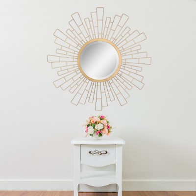 Instantly add an interesting focal point to any room in your home with Stonebriar’s Geometric Sunburst Wall Mirror. This decorative mirror features a stylish geometric sunburst design accented with an antique gold finish giving a little extra pop to your home decor. The end result is a striking and eye-catching piece perfect for your living room, entryway, bedroom, bathroom, or any room in your home. Mirror comes with attached hanging hardware for easy installation right out of the box! Buy your Stonebriar Geometric Sunburst Wall Mirror today and create an instant classic in your home decor.