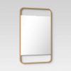 Give your decor a new makeover with this Floating Wall Mirror from Threshold™. This rectangular wall mount mirror makes a decorative and functional accent anywhere in your home. Designed in a unique floating effect, it features a recessed glass center to create the illusion of extra space, and a slim metal frame for sleek look. Use this piece as a functional vanity mirror or as an accent above the sideboard or console in your entryway or living room to decorate your space.