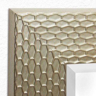 This premium quality mirror is comprised of a champagne-colored polystyrene frame thatβs textured with a repeating honeycomb pattern. Inside this unique frame sits a genuine crystal mirror with ΒΎβ bevel. This slightly angled edge gives the mirror a polished look while also providing you with a little bit of sparkle when the light hits it just right. Each mirror comes specially fitted with four D-ring hangers, allowing you to hang your new piece vertically or horizontally, giving you ultimate freedom in placement and room design.