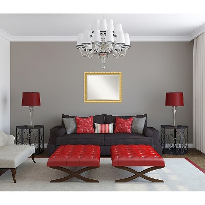 Give your space the finishing touch with this 100% real wood framed mirror. Wall mirrors are a great way to decorate while also bringing light and space into a room. This mirror features a light antique gold frame with a champagne patina across the surface, floral trim on the raised outer edge, and a filigree pattern on the inner edge. Amanti Art is headquartered in Madison, WI, and provides high-quality, handmade framed art, mirrors, and organization boards for your home improvement projects. Our home decor products are made using traditional custom framing techniques that give you the kind of quality you’d expect from your local frame shop. Because of our focus on workmanship, our products are used by architects, developers, interior designers, and homeowners alike to create beautiful functional living spaces.