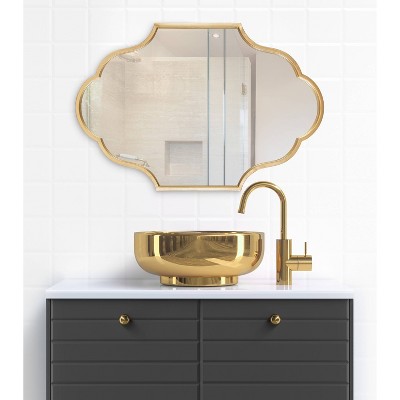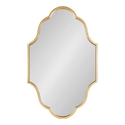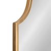Create a symmetrical, curvy wall display that adds vibrancy to your home with the beautiful Rowla Mirror from Kate and Laurel. Inspired by vintage Moroccan design and vintage forms, the Rowla Mirror features a curved, scalloped edge with an oval shape. Each Rowla Mirror features a high-quality, sturdy metal frame, allowing it to withstand the test of time for generations to come. The gold finish on its frame presents you with an elegant, glamorous accent for your bedroom, dining room, entryway, and more. Thanks to its ample, 37 inches tall by 23 inches wide size, you can even use it as a bathroom vanity mirror. This symmetrical accent brings more light into your home, opening up your smaller spaces and giving them more dimension. Hang it either vertically or horizontally on any wall thanks to the convenient metal D-ring hangers secured to the back. With enough wall space, you can even hang the Rowla Glam Wall Mirror in multiples, creating an unforgettable, sophisticated wall display in any room.