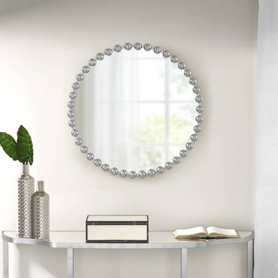 Reimagine your space with our Marlowe Decor Mirror. This round mirror features a stylized spherical iron frame finished with an antique metallic silver foil, creating a rich sheen and light speckled pattern effect. The keyhole hook fixture on the back of the mirror allows for effortless hanging on your wall. Incorporate this wall decor mirror into any room or space, for the perfect combination of modern glam and flair. Wipe clean with damp cloth and handle with care.