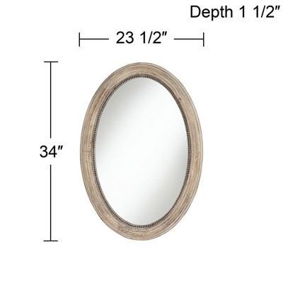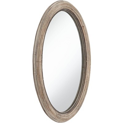 This oval wall mirror will add a touch of rustic style to your decor. With a fir wood frame and non-beveled glass, this piece is sure to enhance the look of an entryway or living area. Incorporate nature and farmhouse appeal into a home effortlessly with this piece.